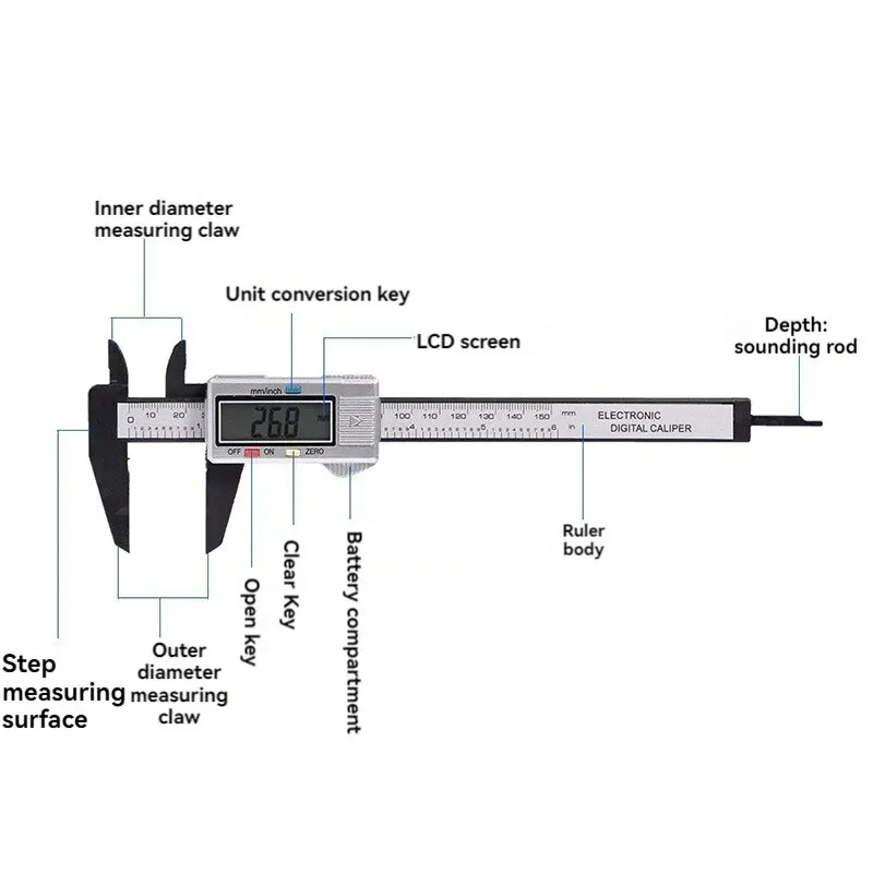 4.Easy-to-read display: The caliper's digital display provides clear, easy-to-read measurements, making it easy for