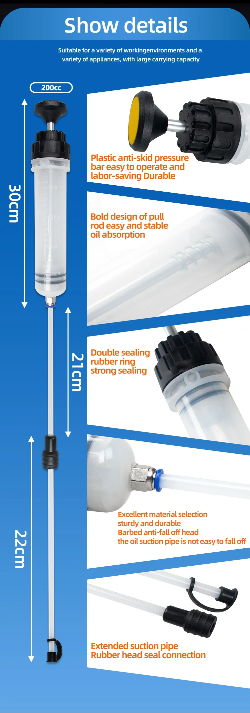 • Large Capacity :With a capacity of 0.5L, this oil extractor can handle large volumes of oil and fluid, making it ideal for use in automotive and industrial applications.