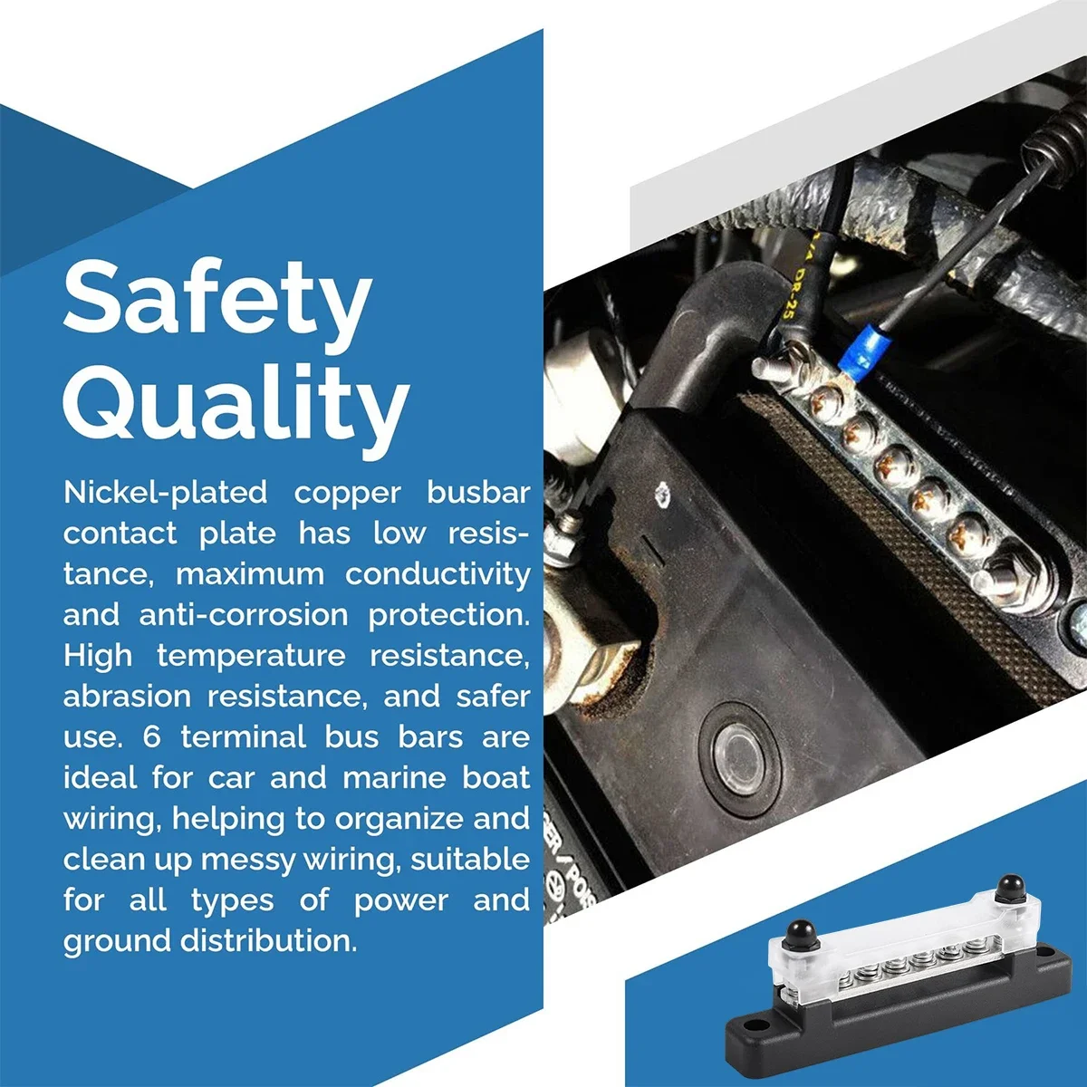 [Safe to Connect] This bus bar terminal block connection is fully insulated so units can be secured to both metal and non-metal.
