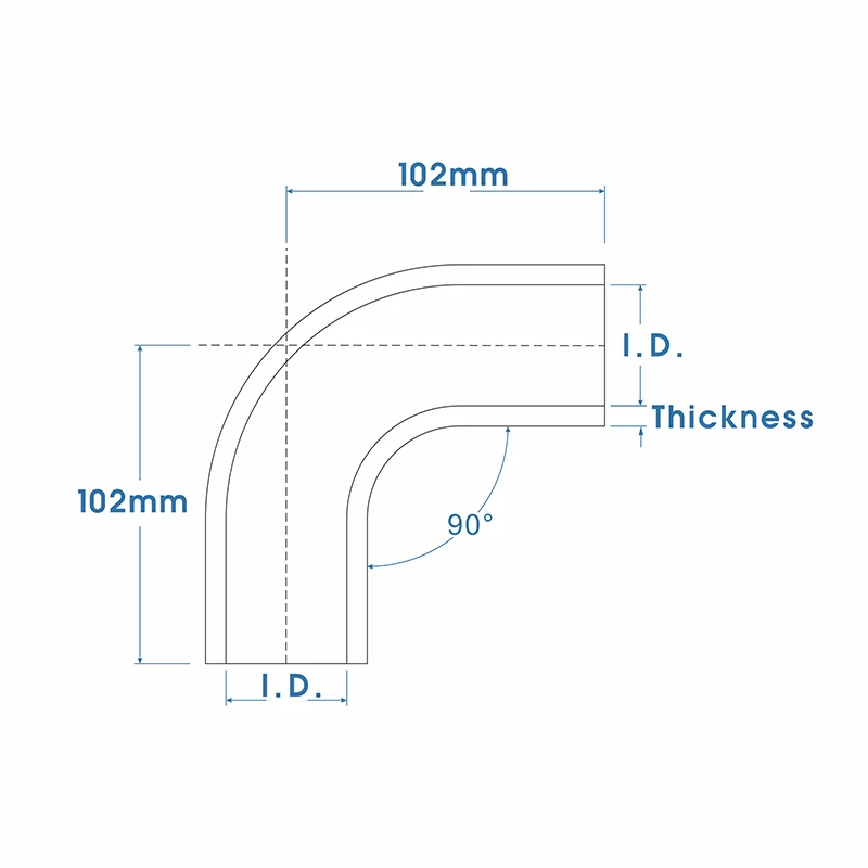 Auto Silicone Coolant Hoses 90 Degree Reducer Coupler Joiner ID 60Mm 63Mm 64Mm 67Mm 70Mm 75Mm 76Mm 80Mm 85Mm 90Mm 100Mm 102Mm